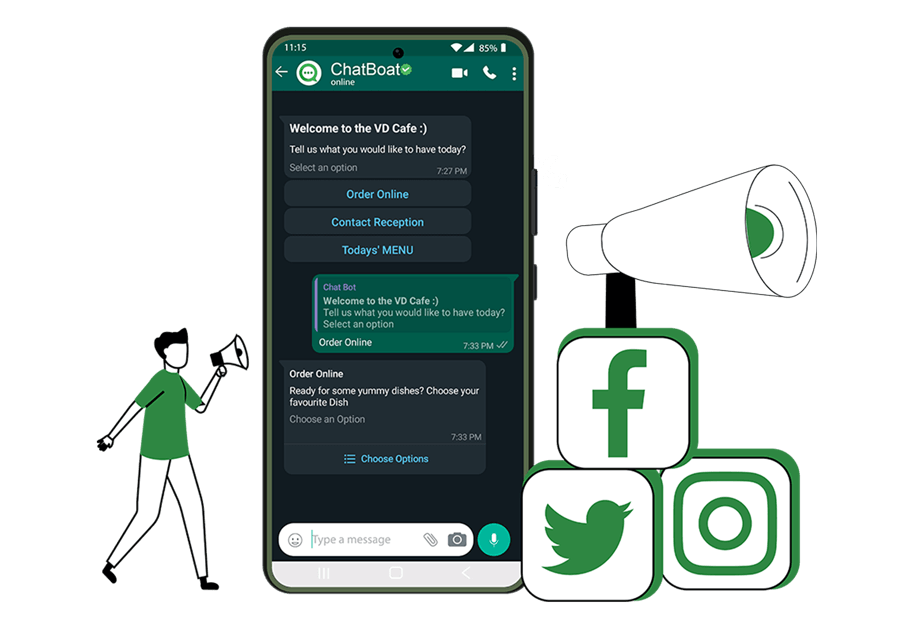 Drive sales, provide product recommendations, share catalogs, and address customer inquiries using Chatboat e-commerce chatbot.